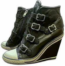Ash Thelma Womens Wedge Sneaker Black Leather 350116 Size EU35-38
