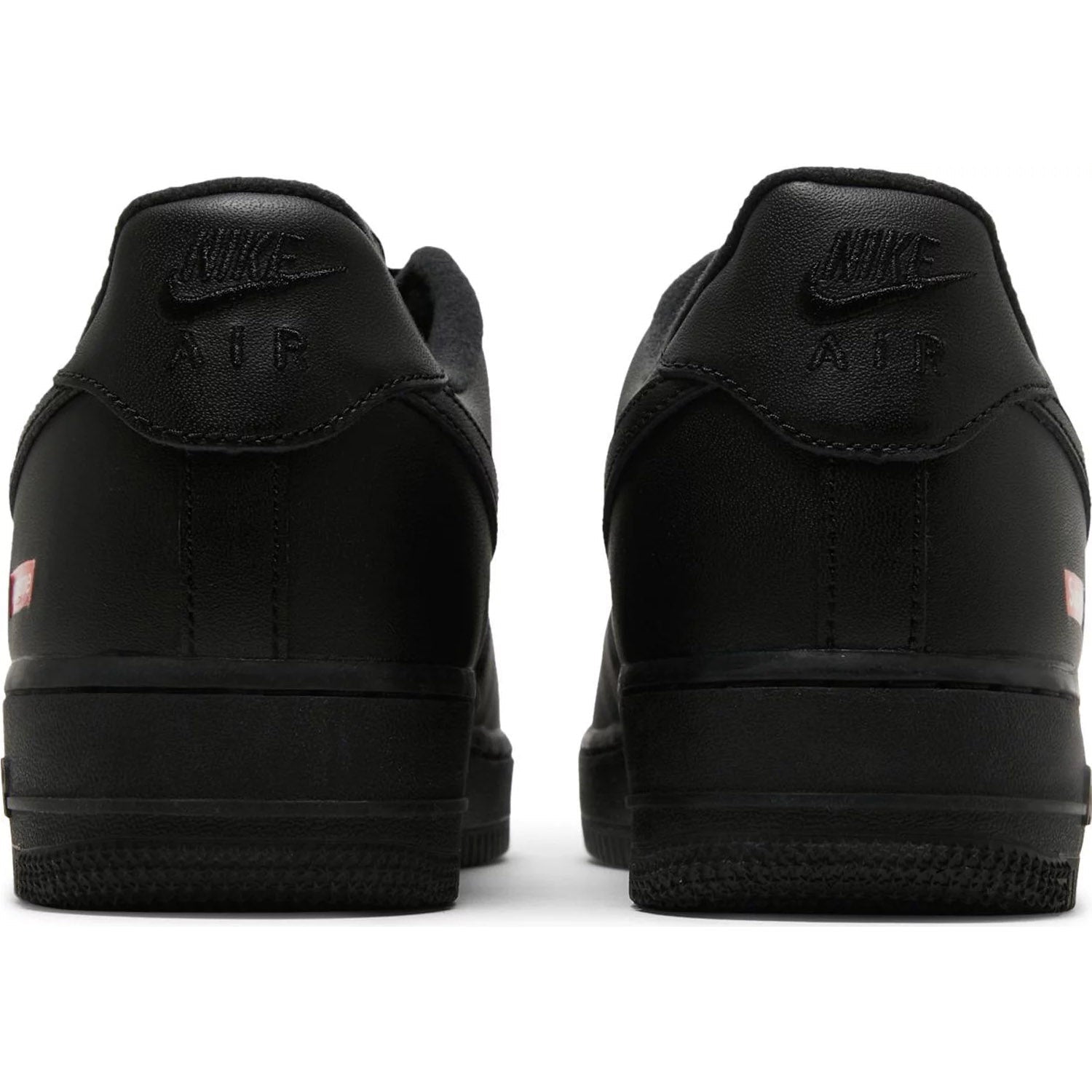 This Air Force 1 Low is comprised of an all-black leather upper with matching soles and detailing. A red Supreme Box Logo placed on the outside heel and alternate branded 3M laces complete the design.