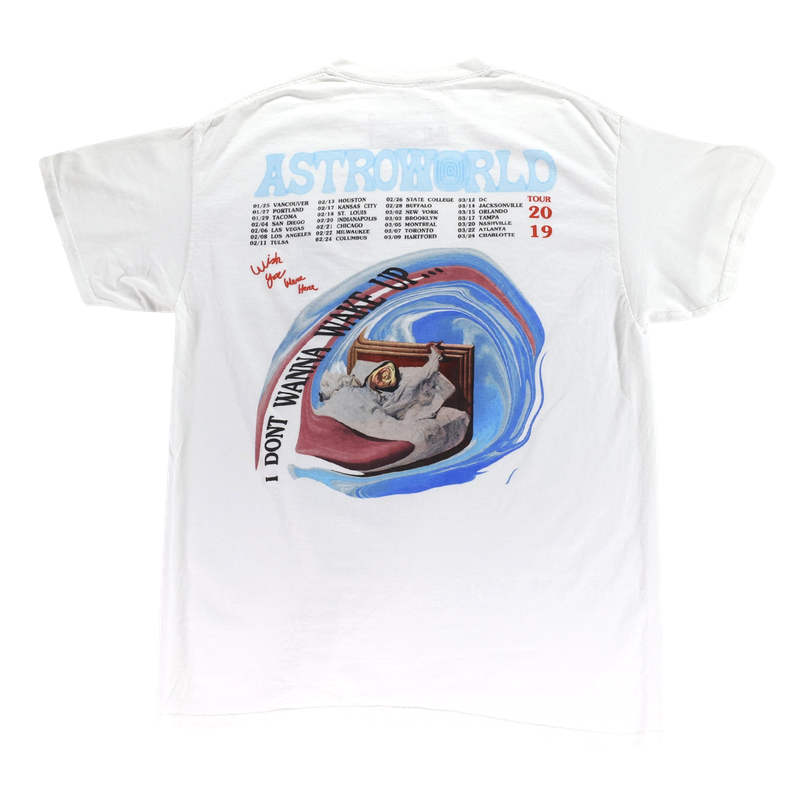 Travis Scott Astroworld Tour Wake Up Tee White 2019 (93665-127) Men's Size M-2XL